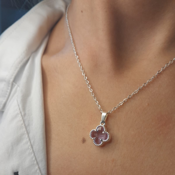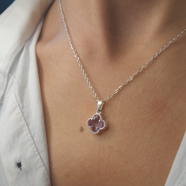 El Collar Van Cleef 🤍✨️combina una cadena de acero blanco con un dije que posee un brillo cálido y elegante.