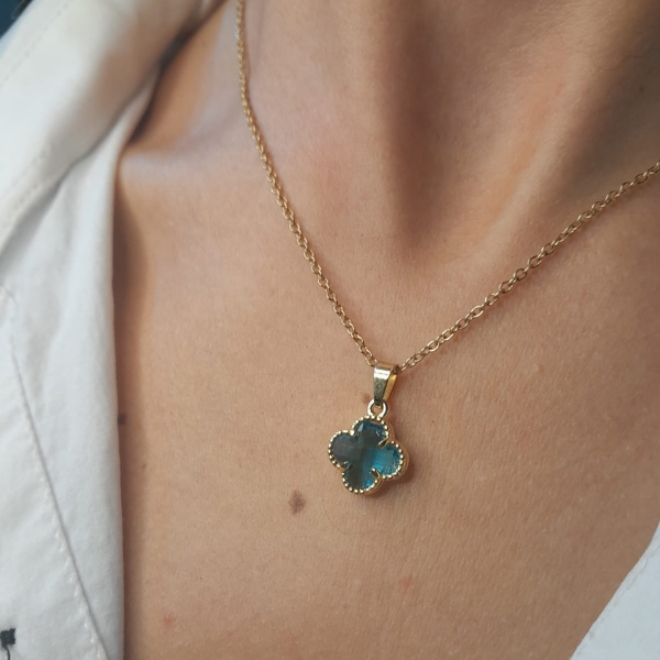 El Collar Van Cleef 🤍✨️combina una cadena de acero dorado con un dije que posee un brillo cálido y elegante.