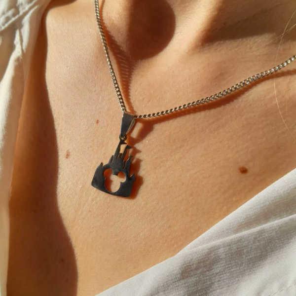 ✨ Cadena en acero quirúrgico plateado con dije de Disney